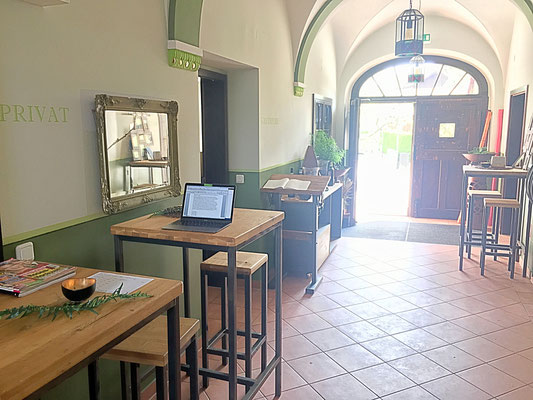 Blog kann ich dort nicht schreiben, es sind 28°C. So habe ich mich ins Erdgeschoss begeben und schreibe nun im Eingangsbereich vom Gasthof Mettner Hof.