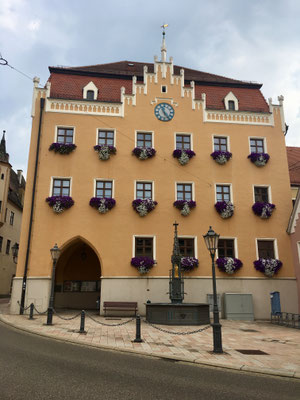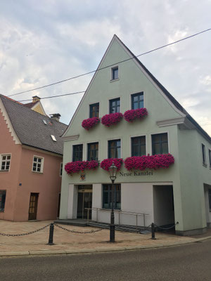 Heutiges Tagesziel war Donauwörth. Ich staunte ab der schönen Altstadt. Als wären sämtliche Häuser neu gestrichen und mit Blumenschmuck behangen worden.