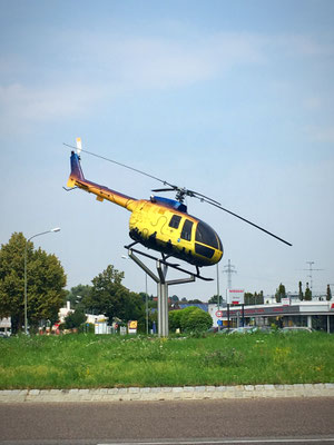 Strassenkreisel ein Hubschrauber als Kreiselobjekt aufgestellt wurde.