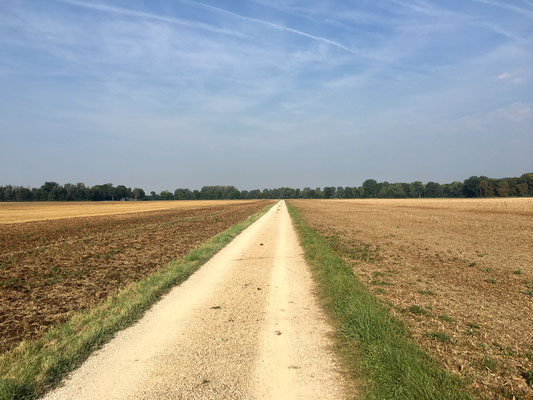 nur ganz selten, auch war ich oft auf der Hinterseite des Schutzdammes. Trotz der Fahrt über die weiten offenen Felder, war die Temperaturen erträglich. Der Himmel war meistens durch Schleierwolken leicht bedeckt und